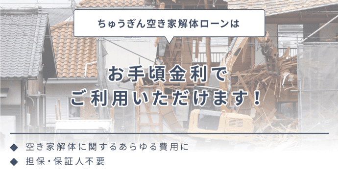 ちゅうぎん空き家解体ローンは、老朽化した空き家の解体や居住予定等のない空き家の取り壊しに関するさまざまなお使いみちにご利用いただけます。