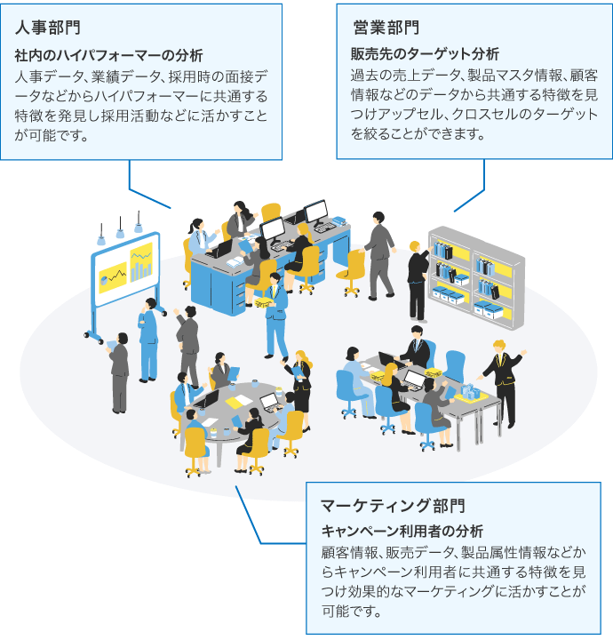 データの加工や前処理なしにさまざまな業務データを入力するだけで、AIが、明確な傾向が現れる「条件」をビジネスセグメントとして自動で特定します。