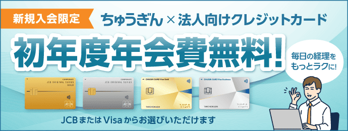 ※ 一般法人カードのプラチナカード(年会費JCB:33,000円 追加6,600円/Visa:55,000円 追加5,500円)については初年度より年会費が発生いたします。