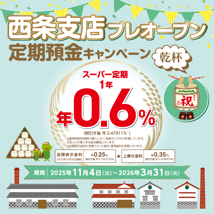 「西条支店プレオープン定期預金キャンペーン『乾杯』」について