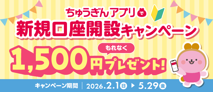 ちゅうぎんアプリで新規口座開設キャンペーン
