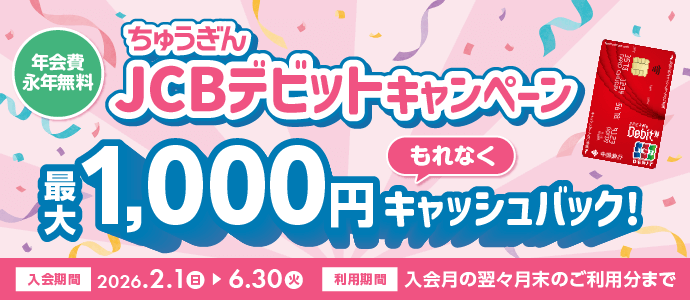 - すでに中国銀行でJCBデビットをご契約中もしくは過去にご契約いただいていた場合は対象外です。