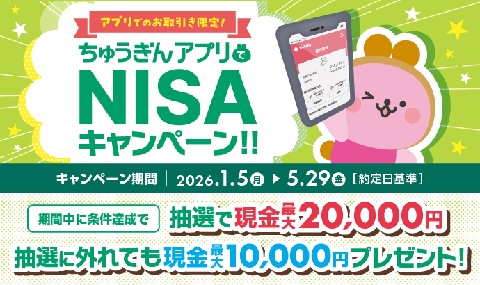 ちゅうぎんアプリでNISAキャンペーン