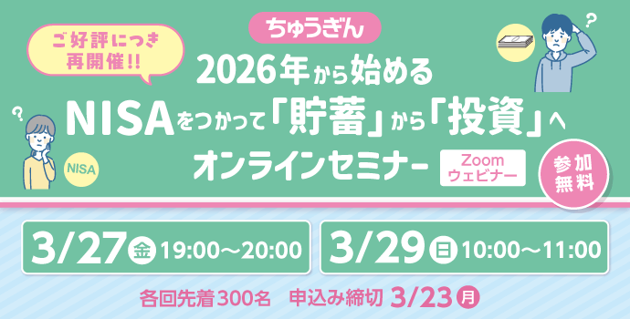 ご好評につき再開催!「【2026年から始める】NISAをつかって「貯蓄」から「投資」へ」オンラインセミナーの開催について