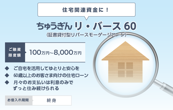 | 項目 | ちゅうぎんリ・バース60 | 当座貸越型リバースモーゲージローン |