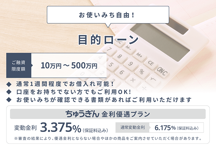 中国銀行の目的ローンは、お使いみちのわかる書類の提出が必要となりますが、フリーローンよりも一般的に金利がより安くおトクになっています。
