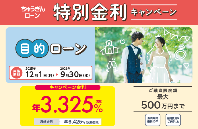 ※ 中国銀行のキャッシュカードをお持ちのお客さまで、ご融資金額が500万円以下の場合等に限らせていただきます。
