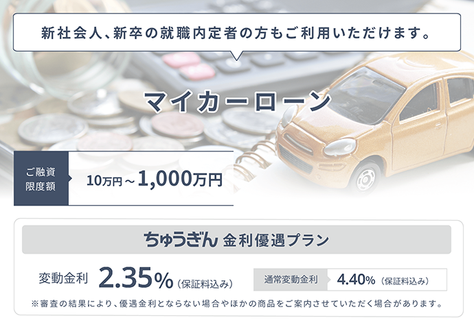 中国銀行のマイカーローンは新卒の就職内定者や新社会人でも利用できるので、入社当日から通勤にマイカーが必要な私は助かりました。