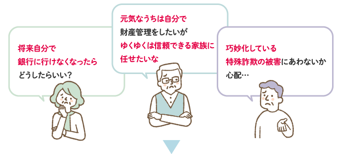 「長期入院して医療費・介護費を自分で引出せない」「医療費・介護費を家族に負担してもらうのは大変」などの不安を取除きます。