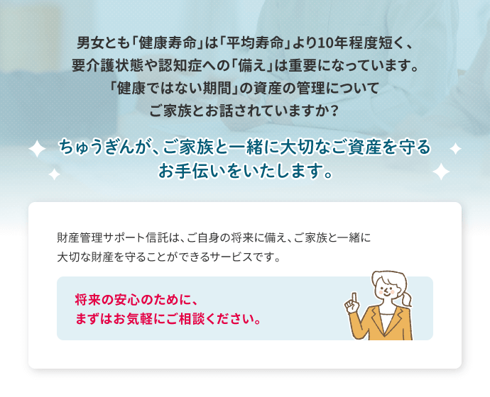 | 商品名 | ちゅうぎん財産管理サポート信託 (元本補てん付き合同運用指定金銭信託) | |
